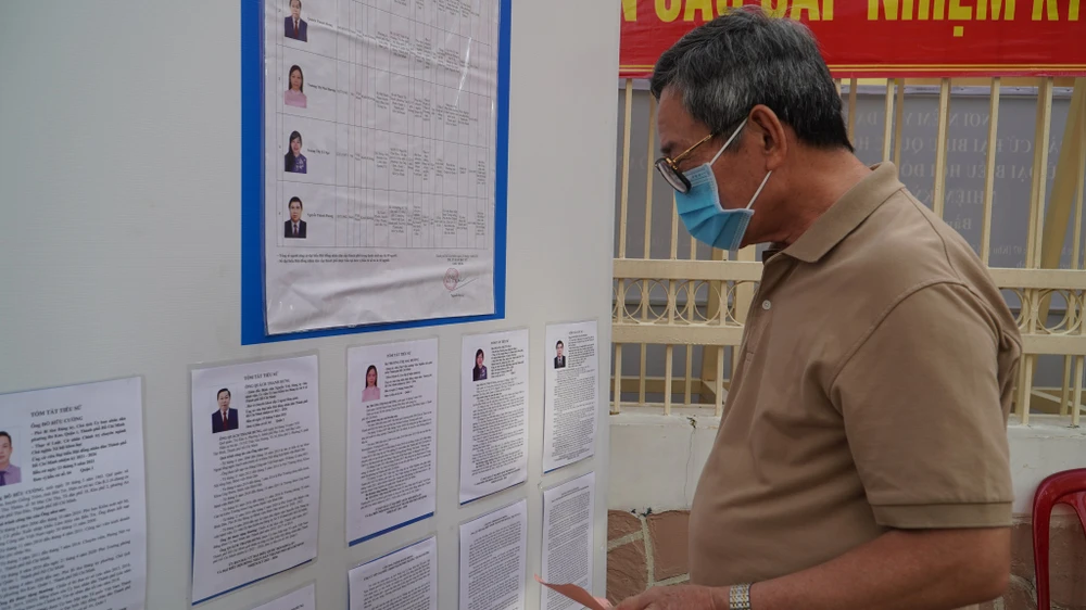 Ông Hoàng Phúc Úc đọc kỹ tiểu sử tóm tắt của các ứng cử viên trước khi đưa ra quyết định bỏ phiếu. Ảnh: MINH TÂM