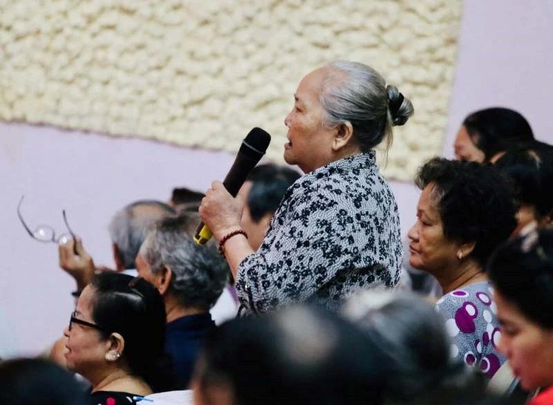 Cử tri Lê Thị The phát biểu ý kiến về vấn đề Thủ Thiêm. Ảnh: HOÀNG GIANG
