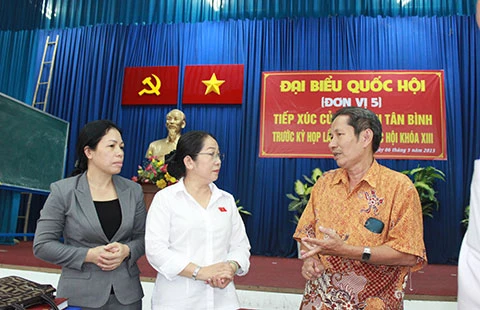 ĐBQH Võ Thị Dung trao đổi với cử tri quận Tân Bình. Ảnh: L.THOA