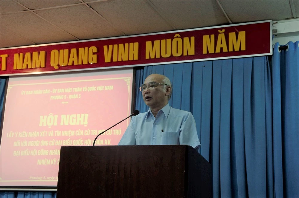 Tối 9-4, Uỷ ban MTTQ Việt Nam phường 5, quận 3, TP.HCM tổ chức hội nghị lấy ý kiến cử tri nơi cư trú đối với ông Phan Nguyễn Như Khuê, Ủy viên Ban Thường vụ, Trưởng ban Tuyên giáo Thành ủy TP.HCM.