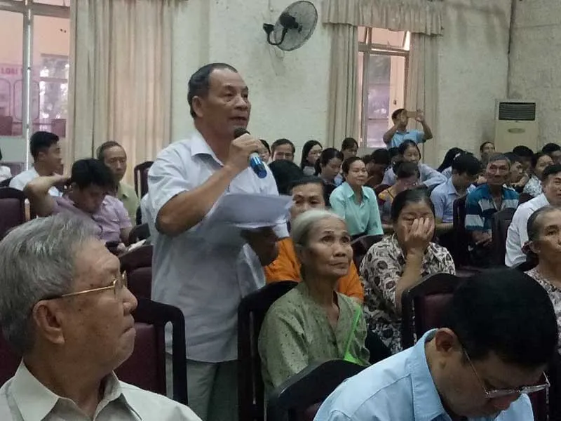 Cử tri quận 9 tại cuộc tiếp xúc với tổ đại biểu Quốc hội TP.HCM sáng 8-10. Ảnh: TÁ LÂM