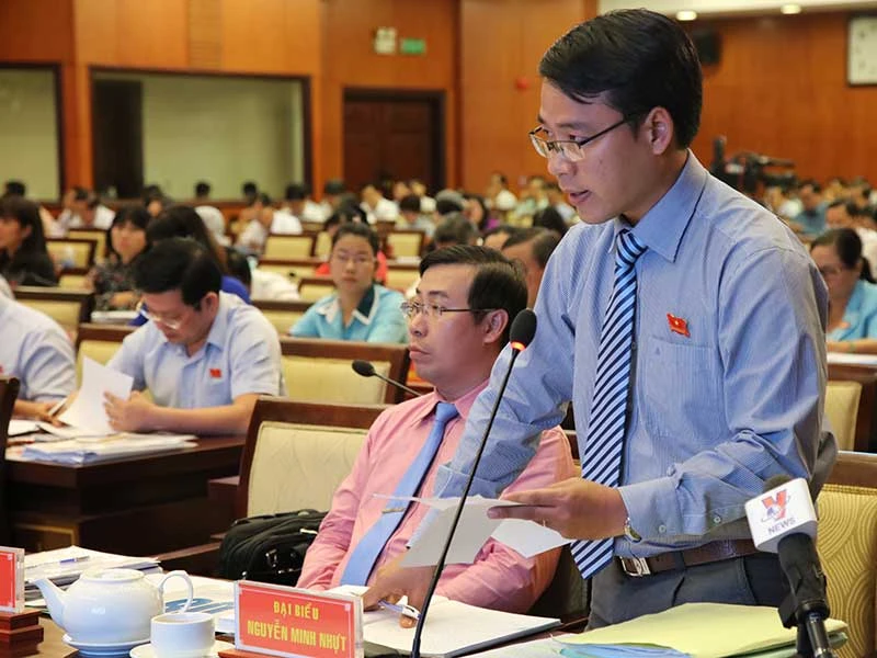 Cử tri TP.HCM cũng quan tâm nhiều đến hai vấn đề bức xúc thường trực của đô thị là kẹt xe và ngập nước. Trong ảnh: Đại diện cử tri chất vấn tại kỳ họp thứ 5, HĐND TP.HCM. Ảnh: HTD