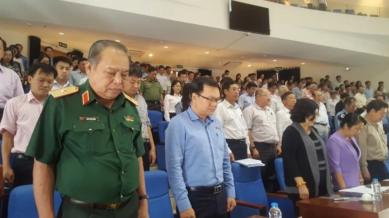 Các đại biểu Quốc hội và cử tri TP.HCM mặc niệm tưởng nhớ Chủ tịch nước Trần Đại Quang. Ảnh: TÁ LÂM