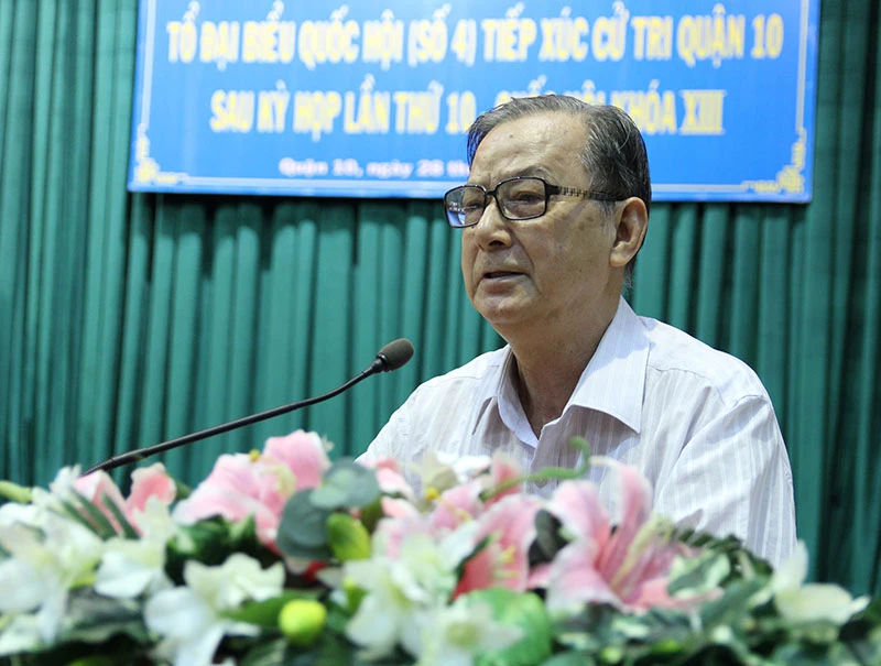 Ngoài ra, nhiều cử tri quận 10 cũng bày tỏ băn khoăn đối với nhiều vấn đề kinh tế, chính trị, xã hội của đất nước và TP. Về ý định "bỏ" môn lịch sử trong dự thảo chương trình giáo dục phổ thông mới, cử tri Nguyễn Trọng Luyện (phường 2, quận 10) chia sẻ: “Khi nghe tin này tôi giật mình vì lịch sử là môn đã học cách đây hàng ngàn năm rồi, dân ta phải biết sử ta, giờ bộ trưởng nói học sinh không thích môn sử nên bỏ sử thì sao được. Nếu học sinh không thích thì chúng ta phải tìm nguyên nhân, tại sao không thích, vì nội dung, vì giáo viên dạy không tốt, cách soạn chưa phù hợp với giai đoạn hiện nay, hay thế nào rồi phải soạn lại cho thích hợp để mọi người đều thích môn sử. Vì có học sử mới có tinh thần yêu nước và giữ nước được”.