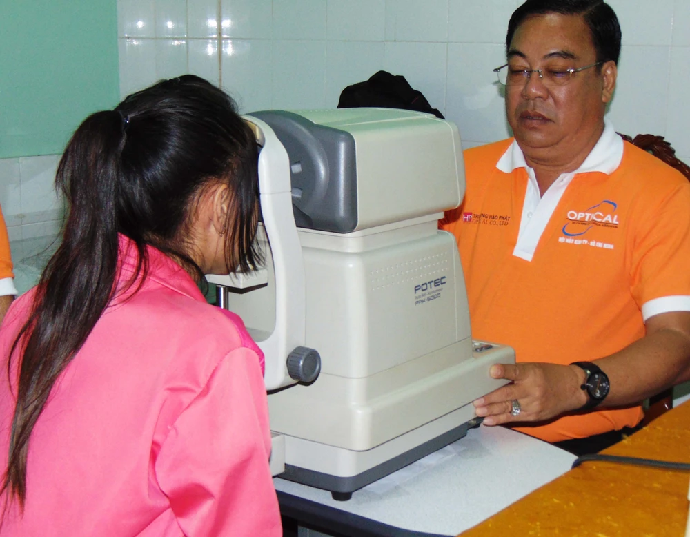 Ông Lê Văn Bồng, Phó Chủ tịch Hội Mắt kính TP.HCM, cho biết đợt này hội đo mắt và tặng kính miễn phí cho khoảng 1.000 bà con, giáo viên và học sinh nghèo.