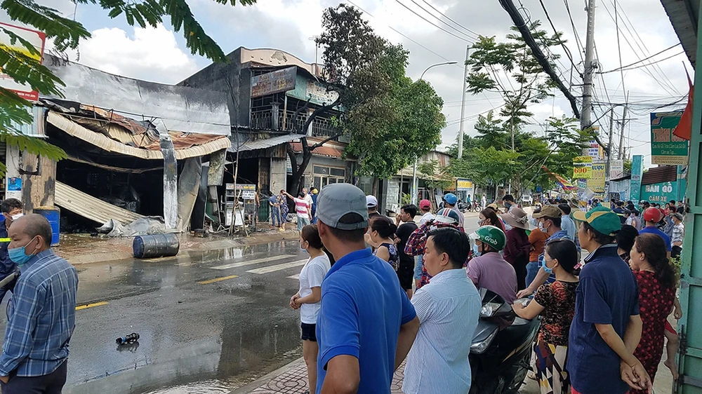 Lửa kèm những tiếng nổ lớn phát ra từ khu vực cửa hàng rộng chừng 80 m2 ngay mặt tiền đường. Ba người bên trong dùng bình cứu hỏa khống chế nhưng bất thành. Họ hoảng loạn chạy ra ngoài kêu cứu.