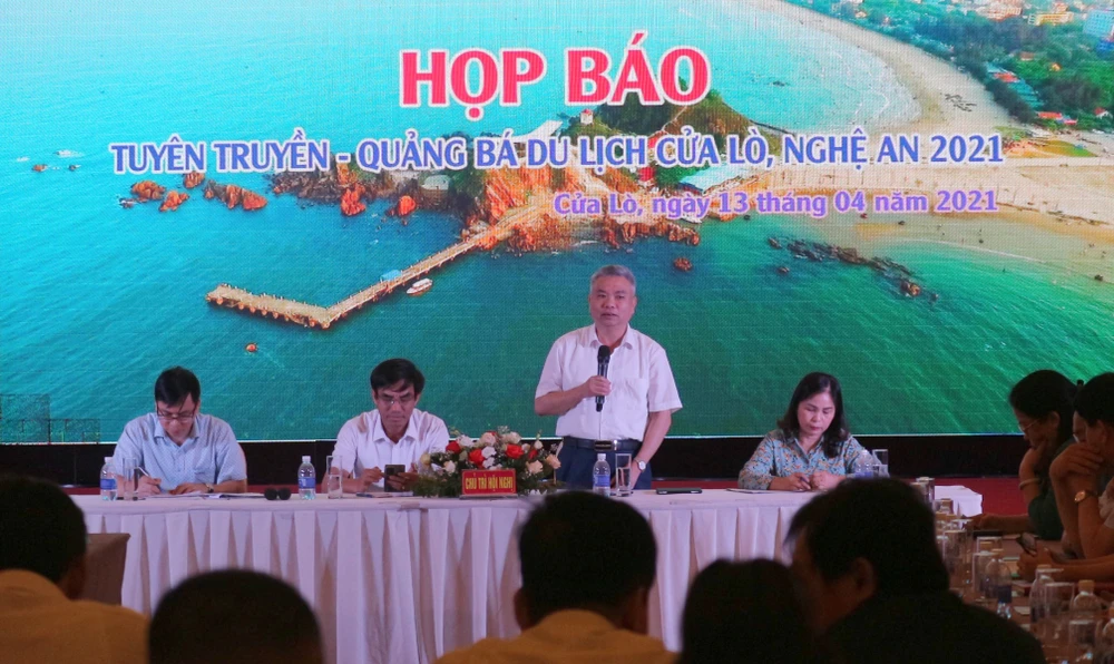 Chiều 13-4, UBND thị xã Cửa Lò (Nghệ An) phối hợp Sở TT&TT, Sở Du lịch và Hội Nhà báo tỉnh Nghệ An họp báo tuyên truyền du lịch Cửa Lò - Nghệ An năm 2021.