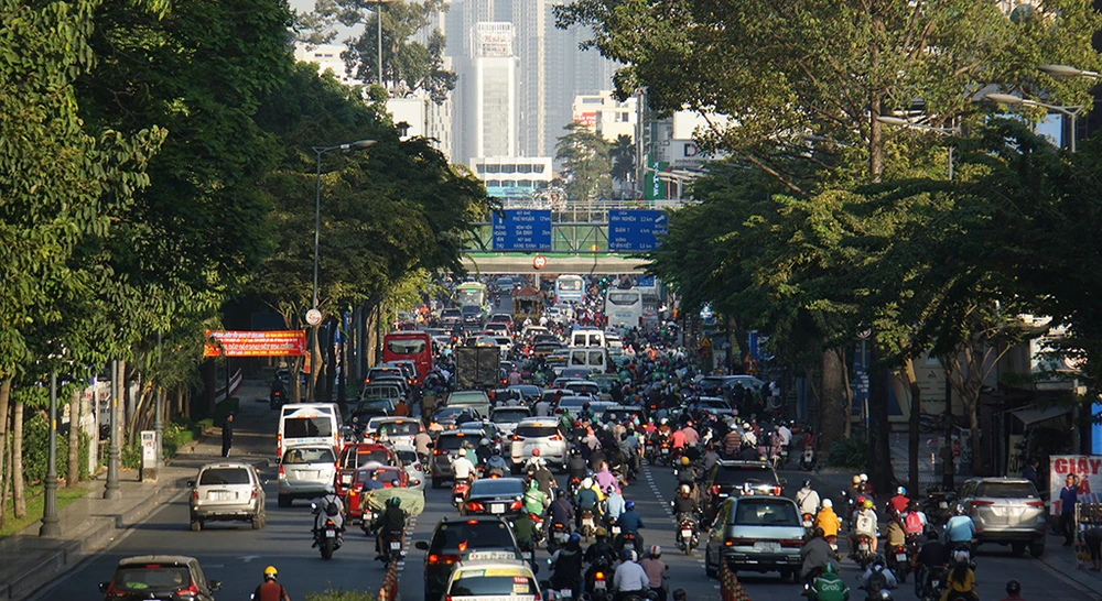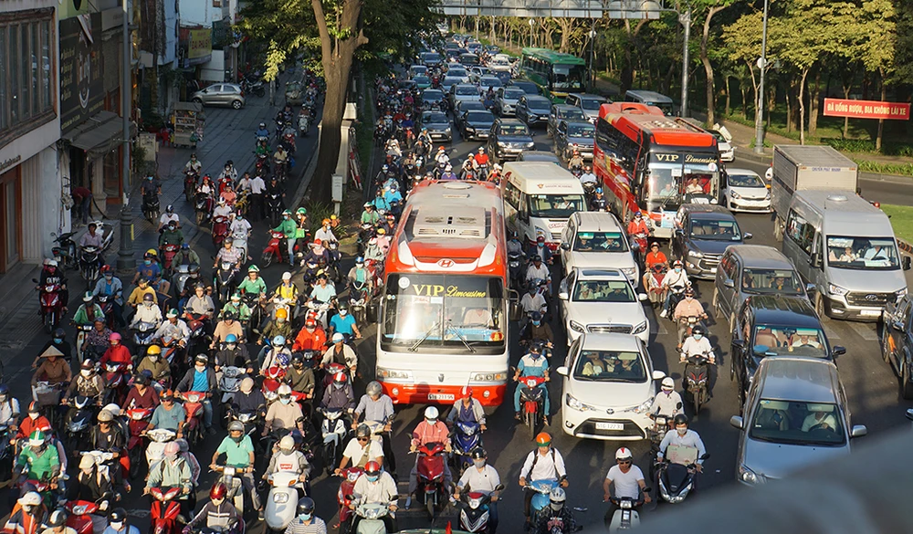 Trong khi vào cùng thời điểm, nhiều tuyến đường trong gần khu vực trung tâm TP cũng rơi vào tình trạng ùn ứ ở nhiều mức độ.