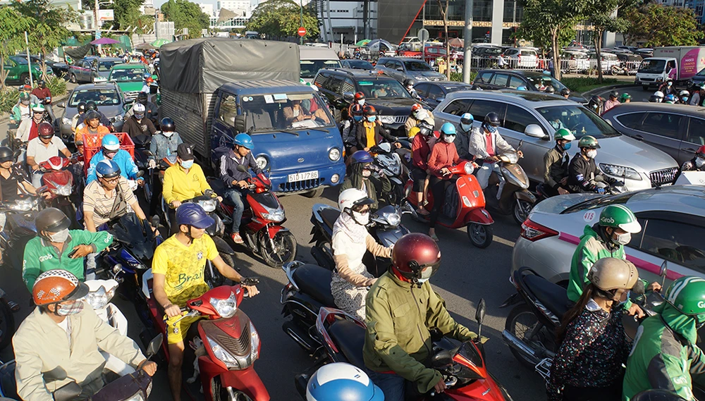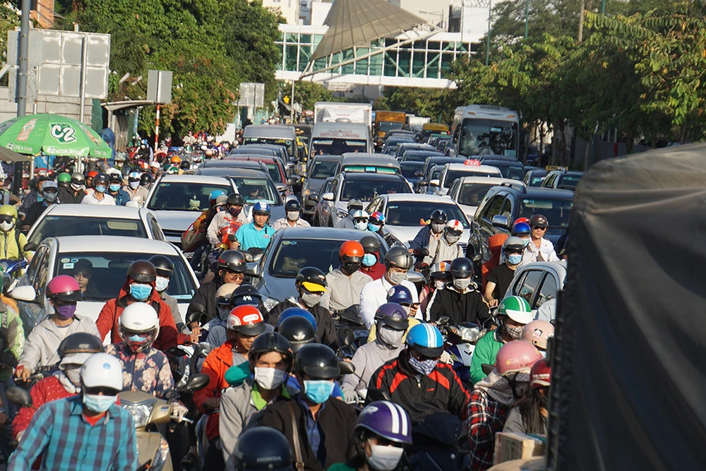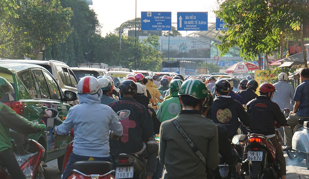 Hàng ngàn phương tiện ùn ứ, kéo dài liên tục ở các tuyến đường xung quanh Tân Sơn Nhất.