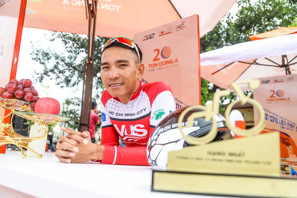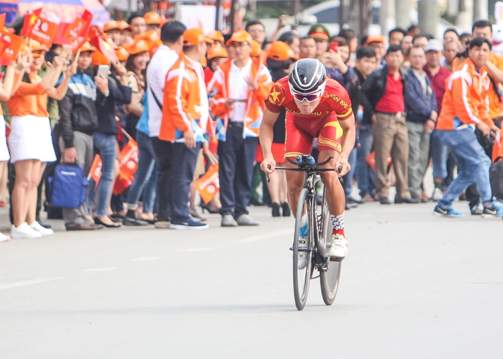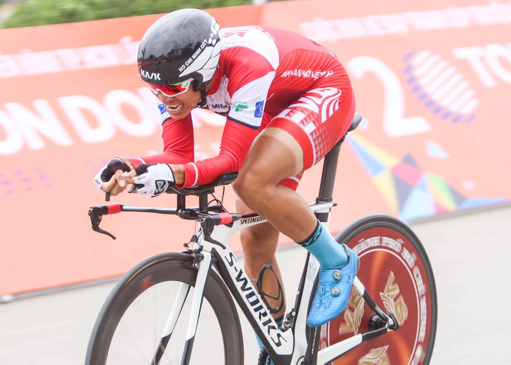 Huỳnh Thanh Tùng nỗ lực hoàn thành những mét cuối lộ trình, bước lên dẫn đầu.