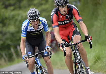 Bartosz Huzarski (trái) trong một chặng đua tại Tour de France.