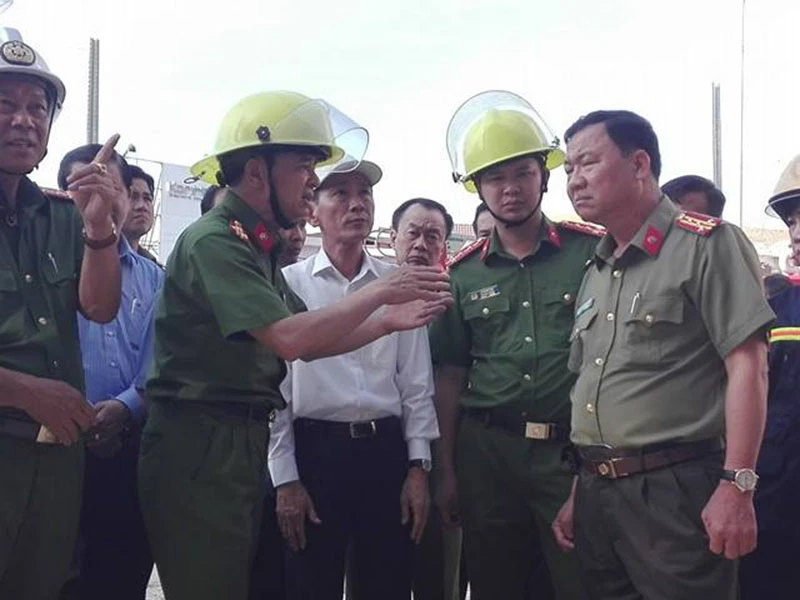Có mặt tại hiện trường, Thiếu tướng Đỗ Minh Dũng, Phó Cục trưởng Cục Cảnh sát PCCC, chỉ đạo các lực lượng chức năng cố gắng trong hôm nay giải quyết xong vấn đề cháy ở công ty này.