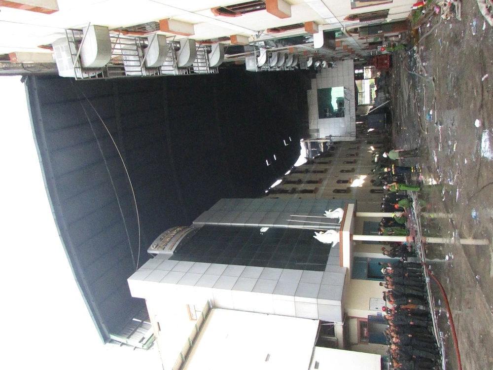 Ghi nhận của PV Pháp Luật TP.HCM, lực lượng chức năng sau khi vào tìm hiểu bên trong đã đi đến quyết định sẽ phá cửa chính của dãy nhà năm tầng bên tay phải (nhìn từ cổng công ty vào) để vận chuyển đồ đạc từ các tầng ra. Lý do phải đập cửa chính vì nhiệt độ ở tầng một cũng rất nóng và không khí ngột ngạt.