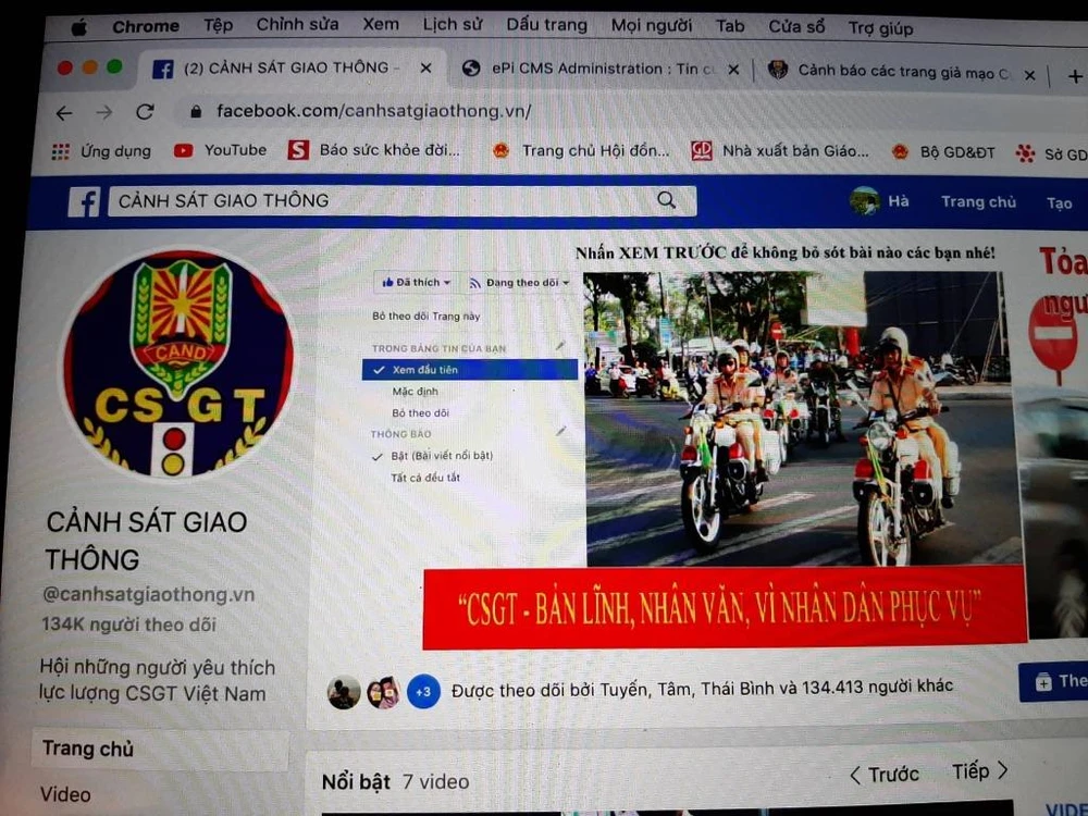 Theo đó, thời gian gần đây, trên Facebook xuất hiện nhiều trang fanpage hoặc kênh thông tin truyền hình trên YouTube mạo danh là trang chính thức của Cục CSGT.