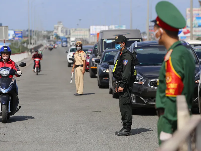 | Lập 62 chốt kiểm soát dịch tại các cửa ngõ ra vào TP.HCM Trước đó, ngày 4-4, UBND TP.HCM đã quyết định lập 62 chốt, trạm kiểm soát dịch COVID-19 trên địa bàn TP, bao gồm 16 chốt, trạm chính và 46 chốt, trạm phụ. Việc tổ chức các chốt, trạm thực hiện đến hết ngày 15-4 hoặc khi có yêu cầu mới. Cụ thể là các chốt kiểm soát tại: Trạm thu phí Long Phước, cầu Đồng Nai, cổng chào Suối Sâu trên tuyến quốc lộ 22, cầu Phú Cường, cầu Vĩnh Bình, cầu vượt Sóng Thần, quốc lộ 1K, tại trạm thu phí cao tốc TP.HCM - Trung Lương, tuyến quốc lộ 50, đường Ba Làng, cầu Đôi trên đường Trần Văn Giàu, quốc lộ 1A, cảng Cát Lái. Ngoài ra, các tổ công tác liên ngành còn bố trí lực lượng kiểm soát tại khu vực sân bay Tân Sơn Nhất, Bến xe Miền Đông, Bến xe Miền Tây, trạm thu phí đường dẫn cao tốc TP.HCM - Long Thành - Dầu Giây… Nhiệm vụ của các chốt, trạm này là kiểm tra, kiểm soát việc ra/vào TP đối với người và phương tiện, thực hiện việc kiểm dịch y tế đối với người ra/vào TP… |