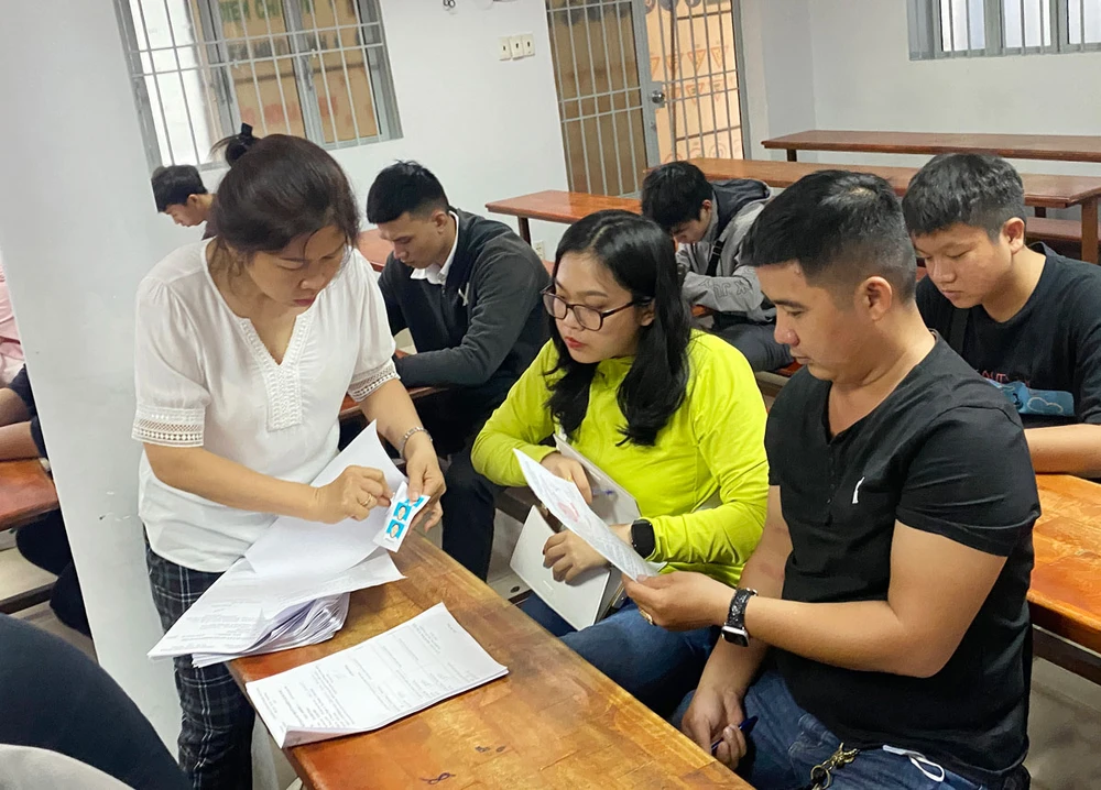 Học viên làm thủ tục sát hạch lái xe ô tô ở TP.HCM. Ảnh: HOÀNG GIANG