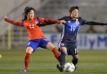 Chủ nhà Nhật (áo xanh) thua trận đầu, ra quân trận thứ hai bị Hàn Quốc cầm hòa đẩy Nhật vào thế khó.