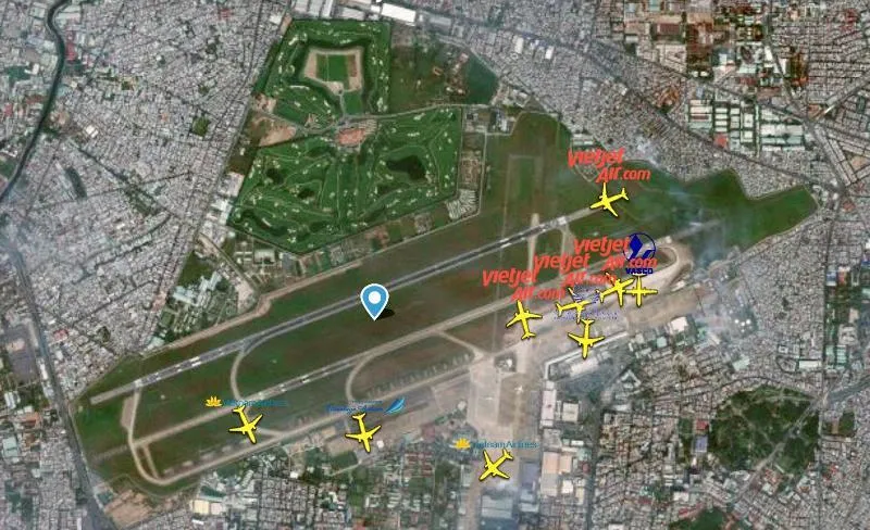 Hình ảnh cập nhật lúc 13 giờ 50 từ flightrada24 cho thấy các chuyến bay của Vietjet cất, hạ cánh tại sân bay Tân Sơn Nhất khá đều đặn. Ảnh: P.ĐIỀN