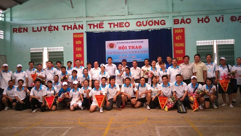 Lãnh đạo Cục THA Dân sự TP.HCM và các vận động viên chụp hình lưu niệm với nhau tại buổi khai mạc.