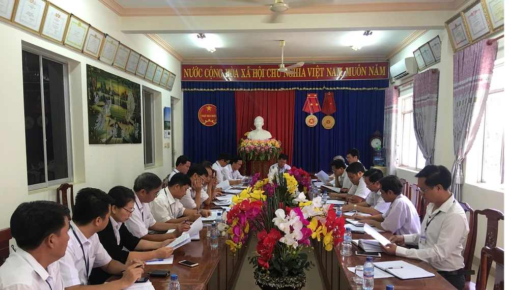 Họp Ban chỉ đạo triển khai thành lập Chi cục Thuế khu vực tại Cục Thuế tỉnh Bình Phước. Ảnh: PV