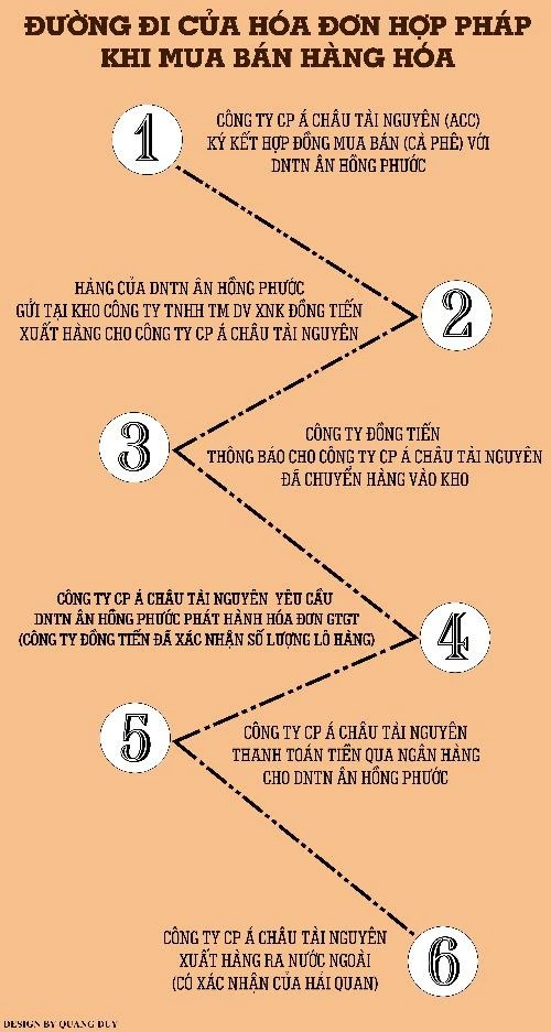 Theo hồ sơ, từ tháng 11-2012 đến tháng 1-2013, Công ty ACTN có mua cà phê của DNTN Ân Hồng Phước (gọi tắt là AHP) tổng cộng số tiền hơn 33 tỉ đồng (chưa bao gồm thuế giá trị giá trị gia tăng, thuế này hơn 1,6 tỉ đồng được hoàn lại cho công ty mua là ACTN).