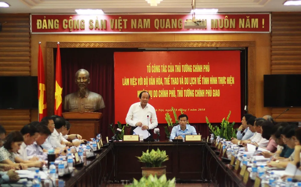 Cũng tại buổi làm việc, Bộ trưởng, Chủ nhiệm Văn phòng Chính phủ (VPCP) Mai Tiến Dũng dẫn đầu Tổ công tác, bên cạnh nêu lên 5 điểm sáng của ngành VH-TT&DL cũng gợi ý 5 nội dung mà Bộ VH-TT&DL cần tiếp tục tập trung làm tốt hơn.