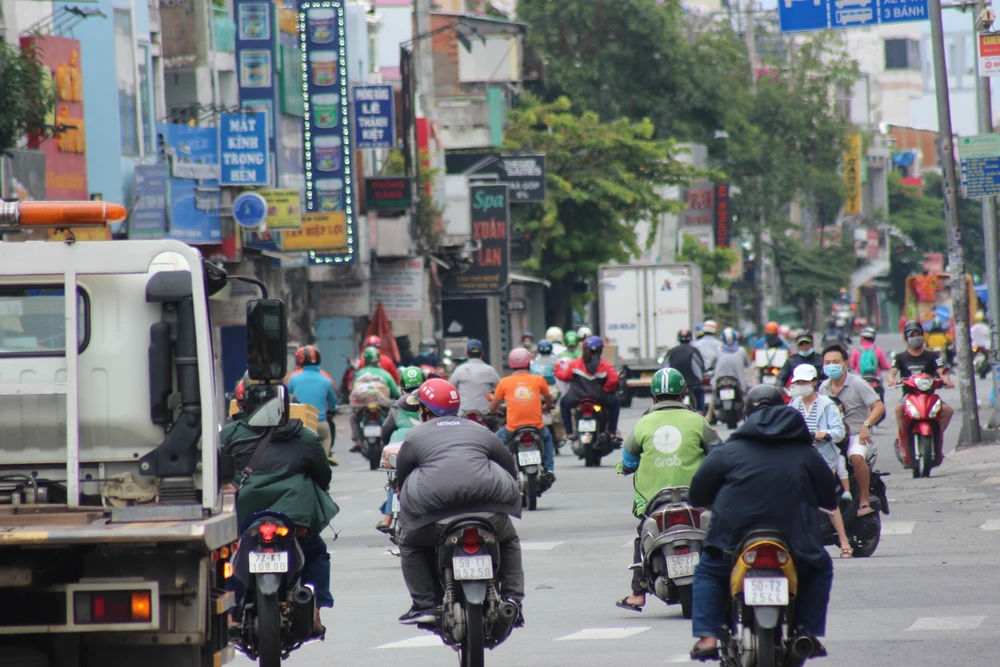 Theo ghi nhận của PLO, đầu giờ chiều 20-8, các tuyến đường như Xô Viết Nghệ Tĩnh, Đinh Bộ Lĩnh, Bạch Đằng (quận Bình Thạnh), Phạm Văn Đồng (Gò Vấp), Hoàng Văn Thụ, Cộng Hoà (Tân Bình)… có khá nhiều phương tiện ô tô, xe máy lưu thông.