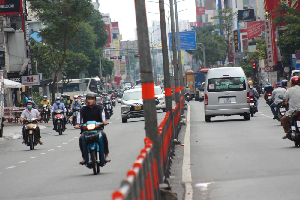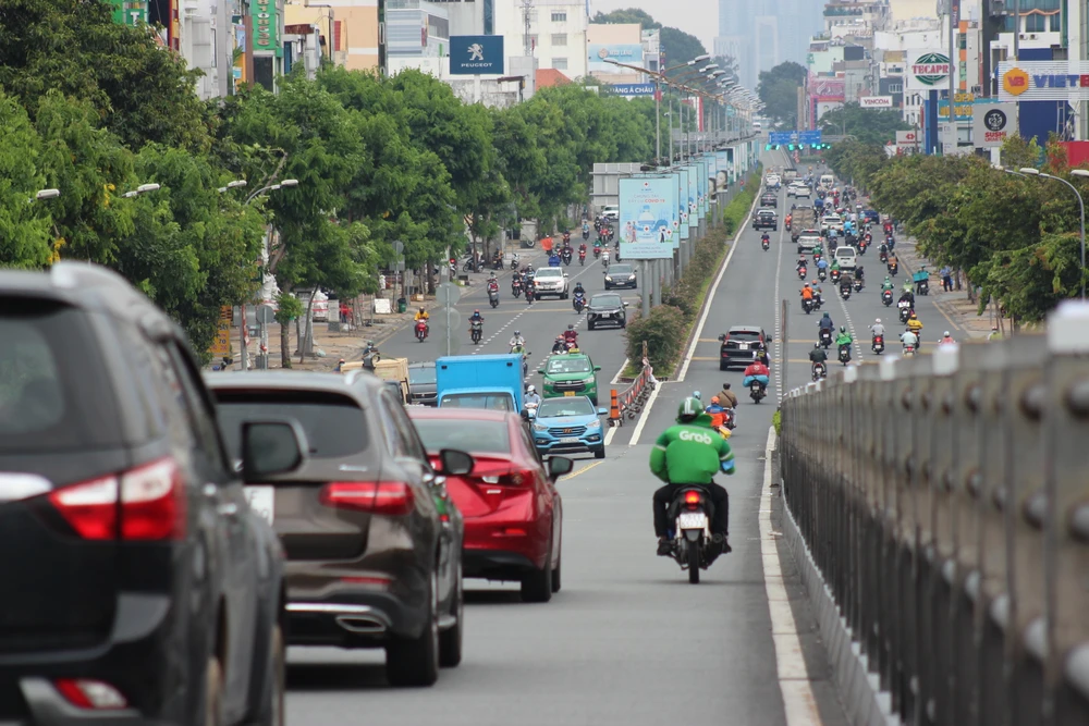 Các phương tiện lưu thông trên đường Bạch Đằng, quận Bình Thạnh vào chiều 20-8. Ảnh: TS
