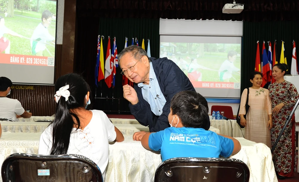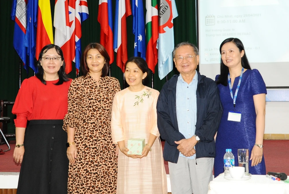Nhà văn, BS Đỗ Hồng Ngọc cùng đại diện Trung tâm SEAMEO Retrac giao lưu cùng các phụ huynh. Ảnh: BTC