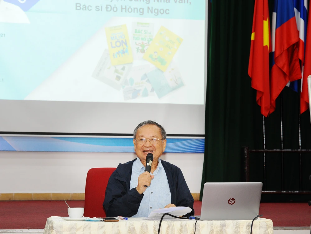 Nhà văn, bác sĩ Đỗ Hồng Ngọc trò chuyện tại Hội thảo. Ảnh: BTC