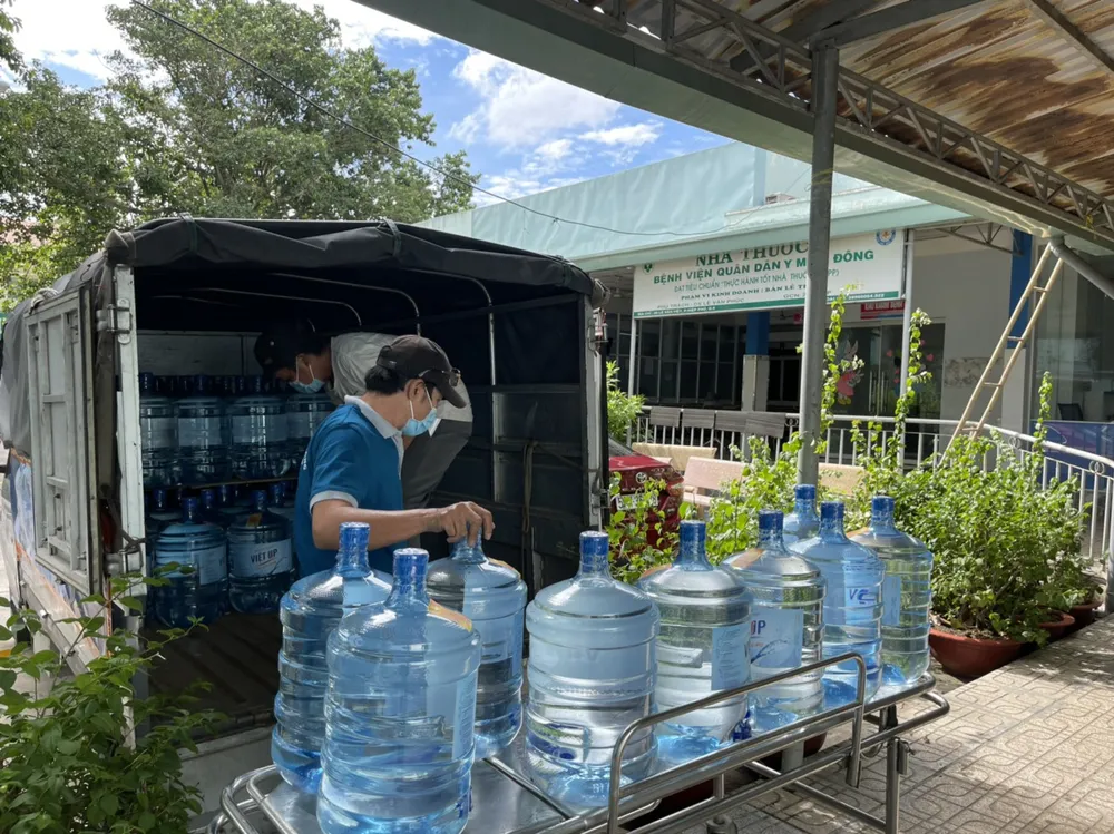 Nước chuyển đến BV Quân dân y miền Đông trong sáng 16-7. Ảnh: H. Liên