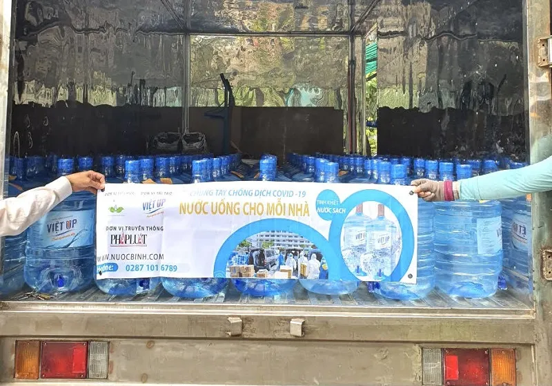 Nhằm chung tay hỗ trợ tuyến đầu phòng chống dịch và cộng đồng vượt qua khó khăn do dịch COVID-19, ngày 15-7, Công ty Cổ phần Thương mại Truyền thông và Du lịch Ngọc Việt, cùng báo Pháp Luật TP.HCM và đơn vị tài trợ đã cung cấp hơn 300 bình nước miễn phí tại Bệnh viện Dã chiến số 8 (phường An Khánh TP.Thủ Đức); Bệnh viện dã chiến số 4 (Vĩnh Lộc B, huyện Bình Chính) và khu phố 8, phường Hiệp Bình Chánh, TP. Thủ Đức.