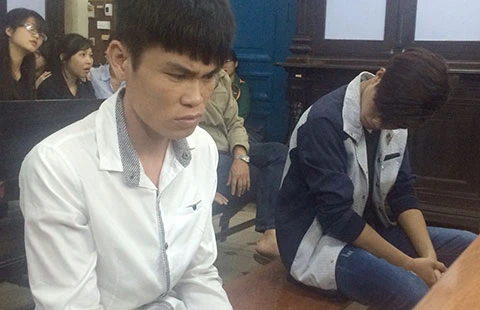 Bị cáo Chưởng căng thẳng và Khoa luôn cúi đầu trong lúc tòa nghị án. Ảnh: HY