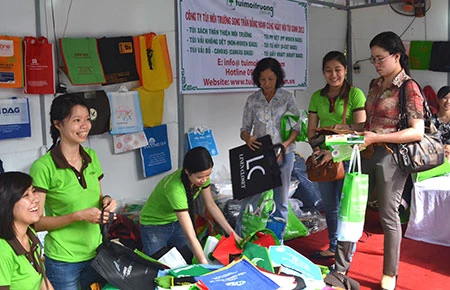 Gian hàng túi thân thiện môi trường tại Ngày hội túi xanh vì môi trường xanh năm 2013. Ảnh: NGỌC CHÂU