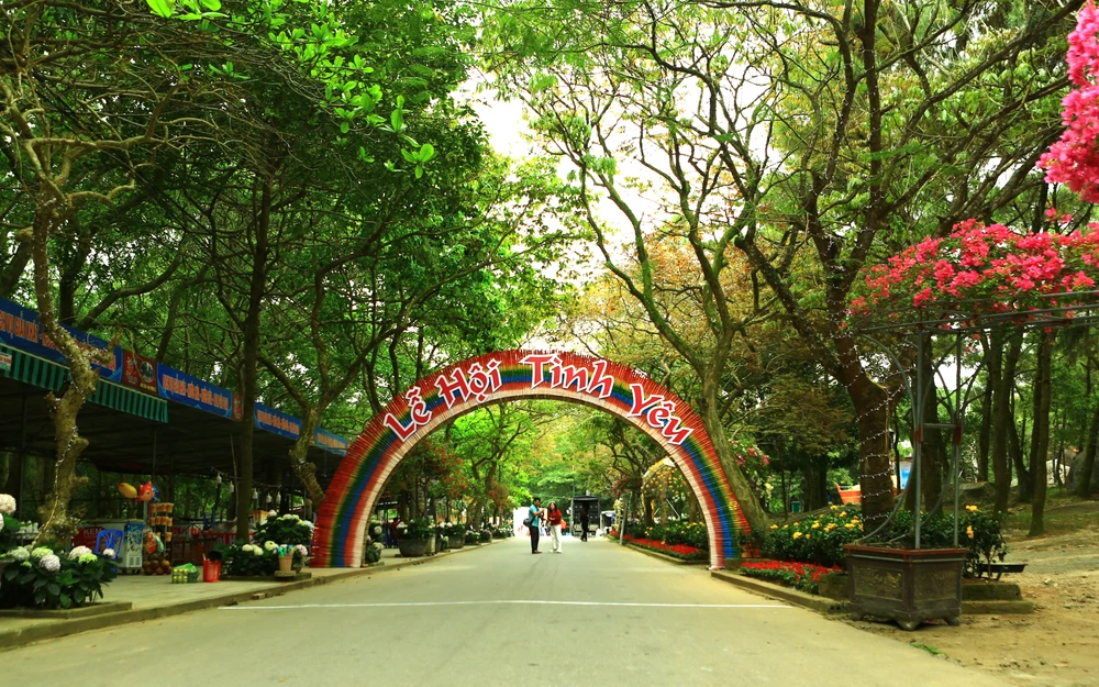 Ngày 9-4, Lễ hội tình yêu hòn Trống Mái 2023 diễn ra ngay tại Công viên Hòn Trống Mái (trên núi Trường Lệ, TP Sầm Sơn), tuy nhiên những ngày qua nhiều người dân lẫn du khách thập phương đã đổ về tham quan, check-in khu vực đường hoa tình yêu.