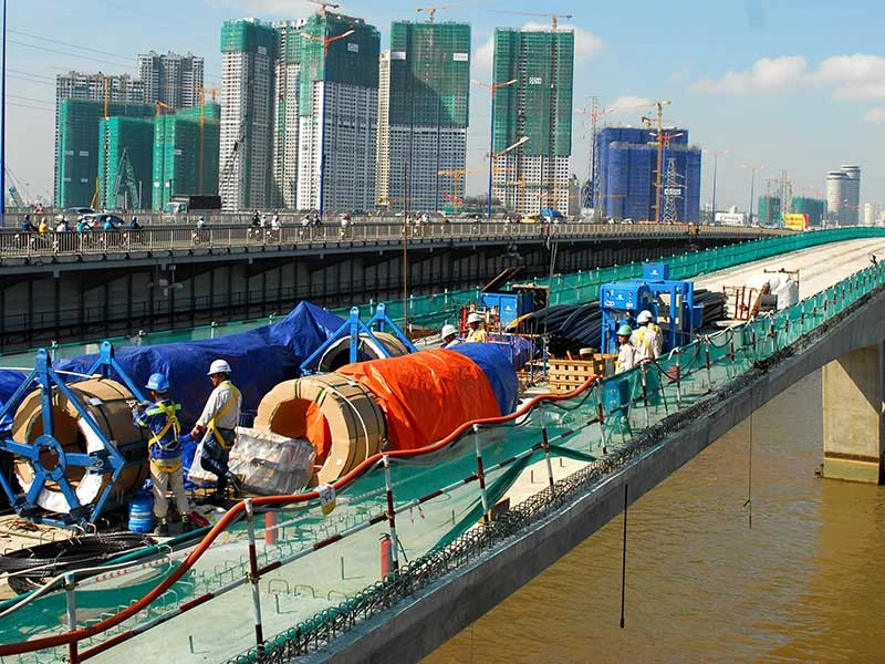 Sử dụng đồng vốn đầu tư hiệu quả sẽ tạo ra sức bật rất lớn cho nền kinh tế. Trong ảnh:Thi công tuyến đường metro của TP.HCM đoạn cầu Sài Gòn. Ảnh: HTD
