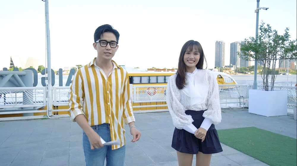Trên đường đi, MC Quốc Bảo và Phan Như Thùy được dịp ngắm nhìn toàn thành phố từ sông, cây cầu của tàu điện Metro đang xây dựng, tòa nhà Lanmark 81…
