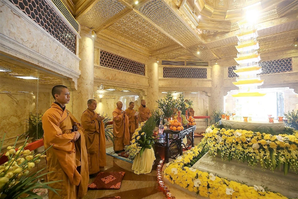 Đây là Ngọc Xá lợi Phật được các cao tăng Myanmar trao tặng tổ đình Vĩnh Nghiêm và được Tổ đình Vĩnh Nghiêm cúng dường Đại tượng Phật tại Fansipan, nguyện cầu Quốc thái Dân an