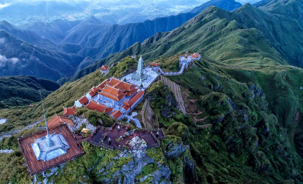 Trải dài từ độ cao hơn 1.600m tới chóp tháp 3.143m huyền thoại được mệnh danh là “nóc nhà Đông Dương”, quần thể bao gồm các công trình kiến trúc tâm linh được chia thành từng cụm, mang nét kiến trúc đặc trưng của những nếp chùa Việt, nép vào núi, lẫn vào mây, tạo nên một tuyệt tác tâm linh giữa chốn địa đầu tổ quốc