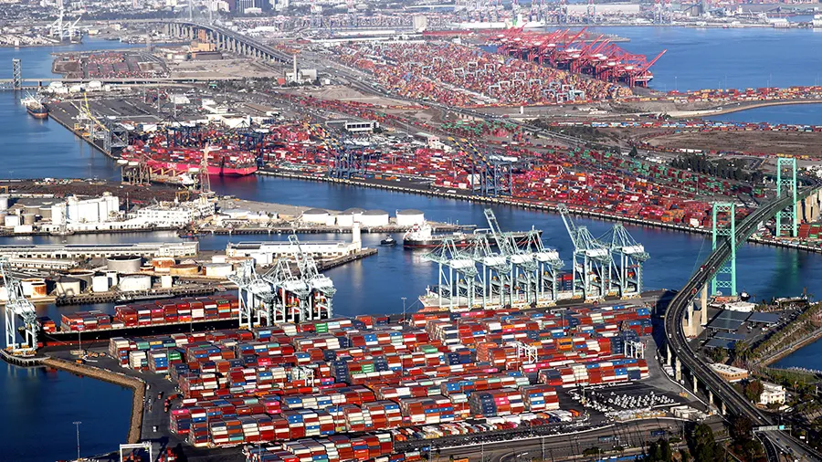 Tàu thuyền và container tập trung tại khu cảng Los Angeles - Long Beach của Mỹ hồi tháng 11. Ảnh: CNN