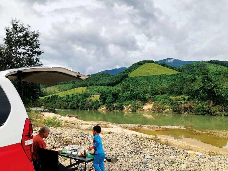 “xÈ là viết tắt của Xe Nhà, tức cái nhà trên chiếc xe. Bản thân chữ xÈ cũng tượng hình như hình dáng đặc trưng của một chiếc campervan rất thông dụng ở các nước. Vì thường xuyên phải di chuyển nên chúng tôi phải tìm cách kết hợp giữa việc vừa làm vừa đi chơi” - Thế Anh kể về chuyến hành trình xuyên Việt trên con xÈ mà hai vợ chồng vừa thực hiện.