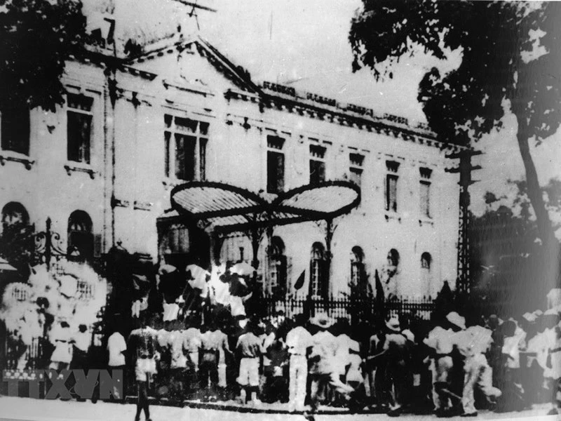 Tiến vào chiếm Bắc Bộ Phủ - Tổng khởi nghĩa giành chính quyền tại Hà Nội tháng 8-1945.Ảnh: tư liệu TTXVN