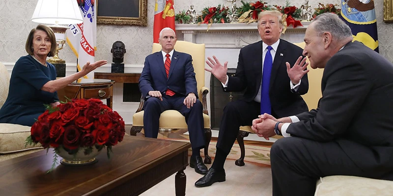 Từ trái qua: Lãnh đạo phe thiểu số Dân chủ tại Hạ viện Nancy Pelosi, Phó Tổng thống Mike Pence, Tổng thống Donald Trump, lãnh đạo phe thiểu số tại Thượng viện Chuck Schumer. Ảnh: GETTY IMAGES