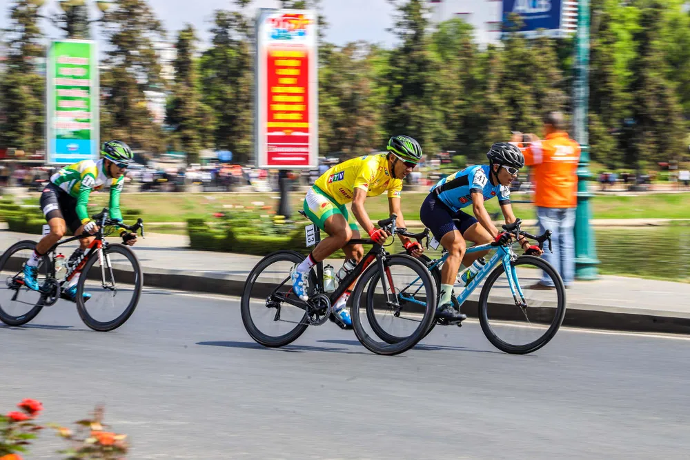 Sau hai chặng đấu liên tục vượt đèo, ở lộ trình 51 km vòng quanh Hồ Xuân Hương - Đà Lạt, người hâm mộ tiếp tục chứng kiến pha nước rút kinh điển giữa hai “chiến đấu cơ” Lê Nguyệt Minh của Minh Giang TP.HCM và Nguyễn Thành Tâm (Hạt Ngọc Trời An Giang).