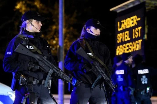 Cảnh sát Đức canh phòng bên ngoài sân vận động Hanover. Ảnh: REUTERS
