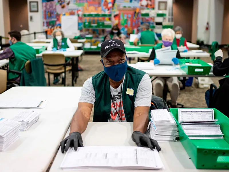 Nhân viên kiểm phiếu tại một điểm bỏ phiếu ở TP Denver, bang Colorado ngày 4-11. Ảnh: AP