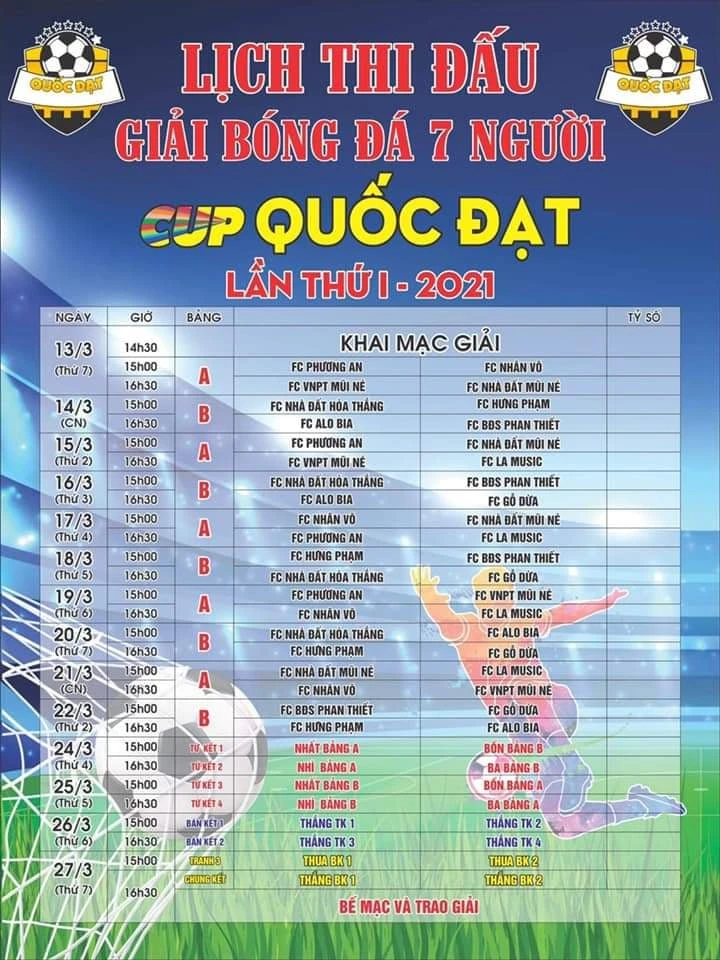 Ý tưởng gầy dựng sân chơi lành mạnh và rèn luyện sức khỏe cho người dân Mũi Né của cựu cầu thủ Lê Thanh Phong đã nhận sự hưởng ứng mạnh mẽ của những người bạn có chung niềm đam mê bóng đá. Chỉ trong một thời gian ngắn, giải bóng đá Quốc Đạt lần I-2021 có đến 10 CLB phong trào mạnh đăng ký như Nhân Võ, Phương An, Hưng Phạm, Hòa Thắng,...