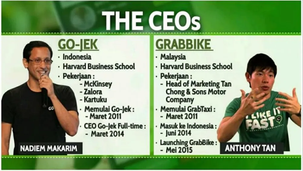 Một nhà đầu tư nói khoảng cách định giá giữa Grab và Go jek không lớn, lần lượt là 12-13 tỉ USD so với 10 tỉ USD. Điều đó cho thấy các nhà đầu tư vẫn đánh giá độ hiệu quả của Go Jek.