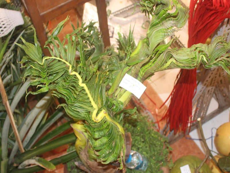 Đáng chú ý đến với lễ hội du khách còn được tận mắt chứng kiến nhiều loại trái cây, củ, quả “độc, lạ” được trưng bày và tham gia thi đấu xảo. Trái mít nặng 30 kg, cây dừa 5 thân, trái sầu riêng lạ, trái bí đao dài hơn 1 thước, quả dừa to, chùm trái sai, trái mãng cầu na nặng gần 1kg, trái bưởi lạ, buồng chuối sai, cây mía dài khoảng 20m…