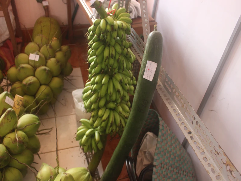 Trái bí lạ dài hơn 1m, buồng chuối cau sai trái tại hội thi đấu xảo trái lạ
